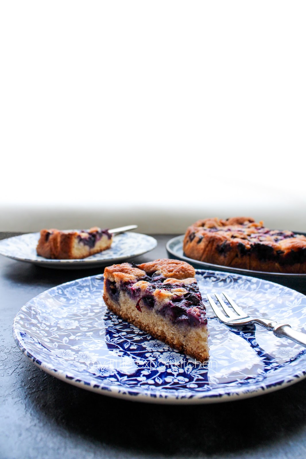 It’s soft in the center with the melting, almost jammy rhubarb adding moistness to it, with the crunch of the ground almonds and the added texture from the wholemeal rye flour, while the top, bottom and sides of the cake are pleasantly crunchy form the generous sprinkling of sugar before baking. The flavors are balanced and it’s neither too sweet nor too sharp. For me, it’s just right. S on the other hand, who has an even sweeter tooth than I have, was dying for a ball of ice cream to put on top, which he did the next day.