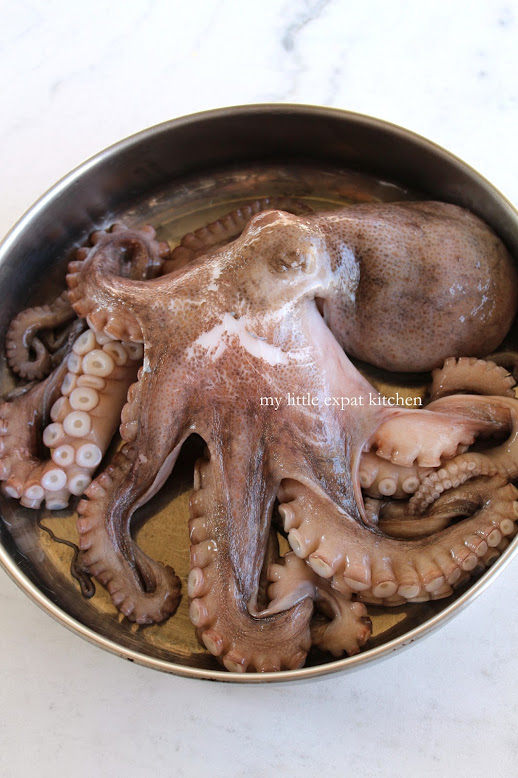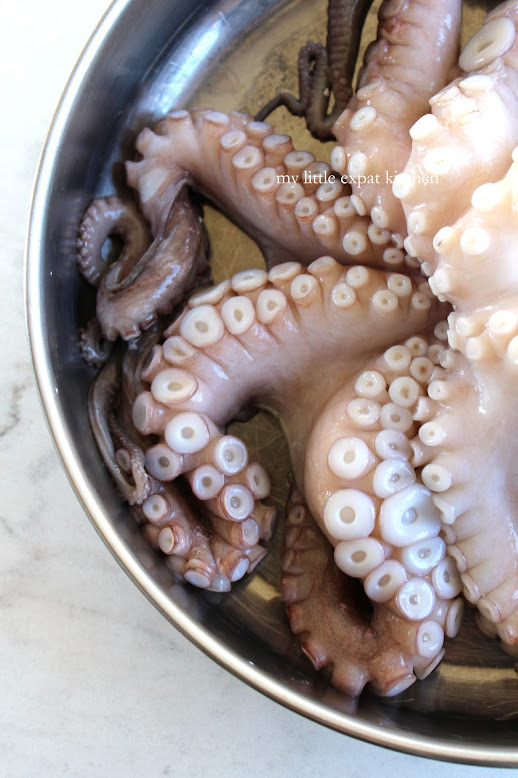 Clean and cut the octopus according to the instructions in this post.